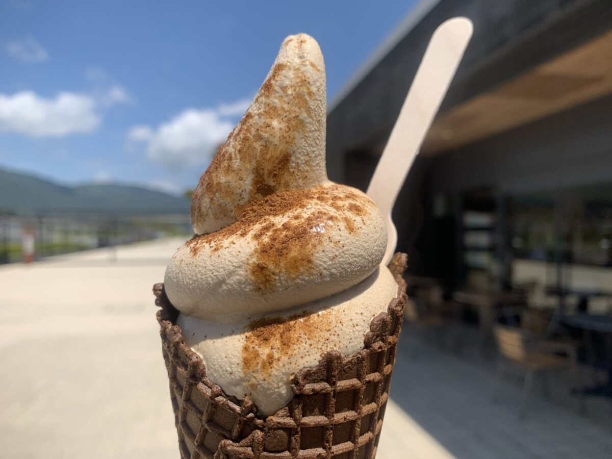 This soft serve ice cream has a slightly bitter taste for adults, with coffee that has a pleasant bitterness mixed into the mildly sweet cream, leaving a strong coffee flavor that lingers even after it melts in your mouth