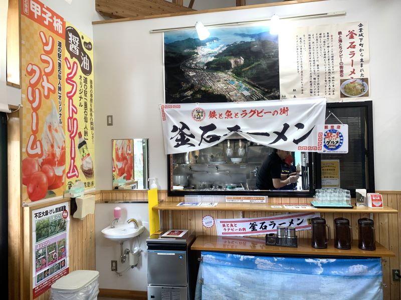 The roadside station's restaurant has a small, but comfortable eat-in space where you can enjoy a leisurely meal of Kamaishi ramen, one of Iwate Prefecture's most famous local ramen