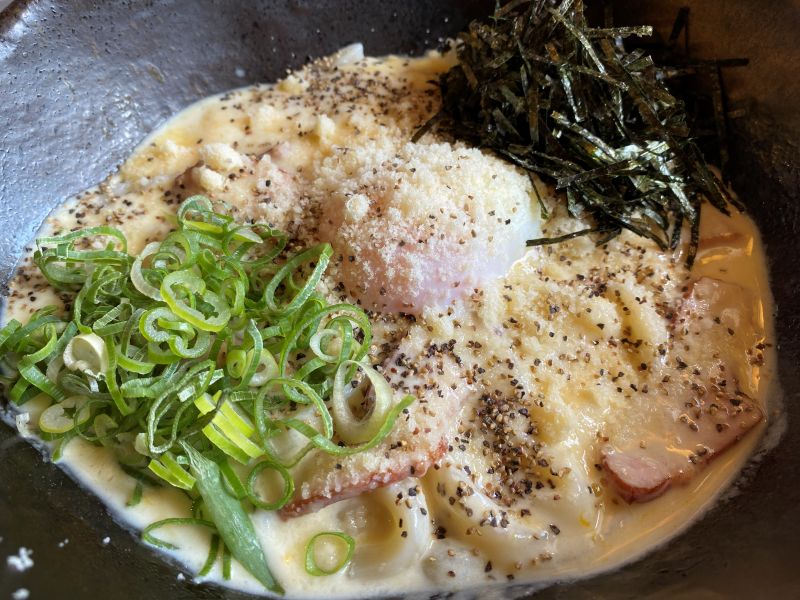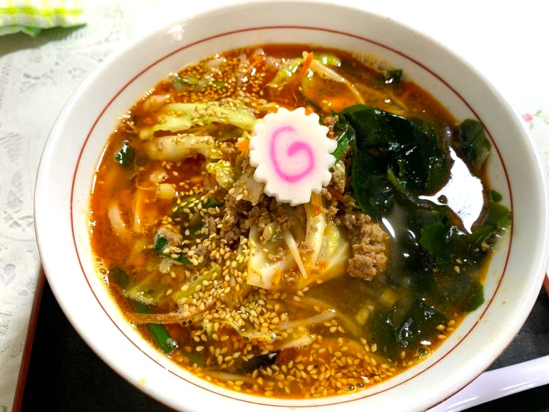 The combination of the sesame-flavored soup, reminiscent of tantanmen, and the tangy sauce with plenty of green onions and fluffy eggs is exquisite, and it warms you to the core on a cold day