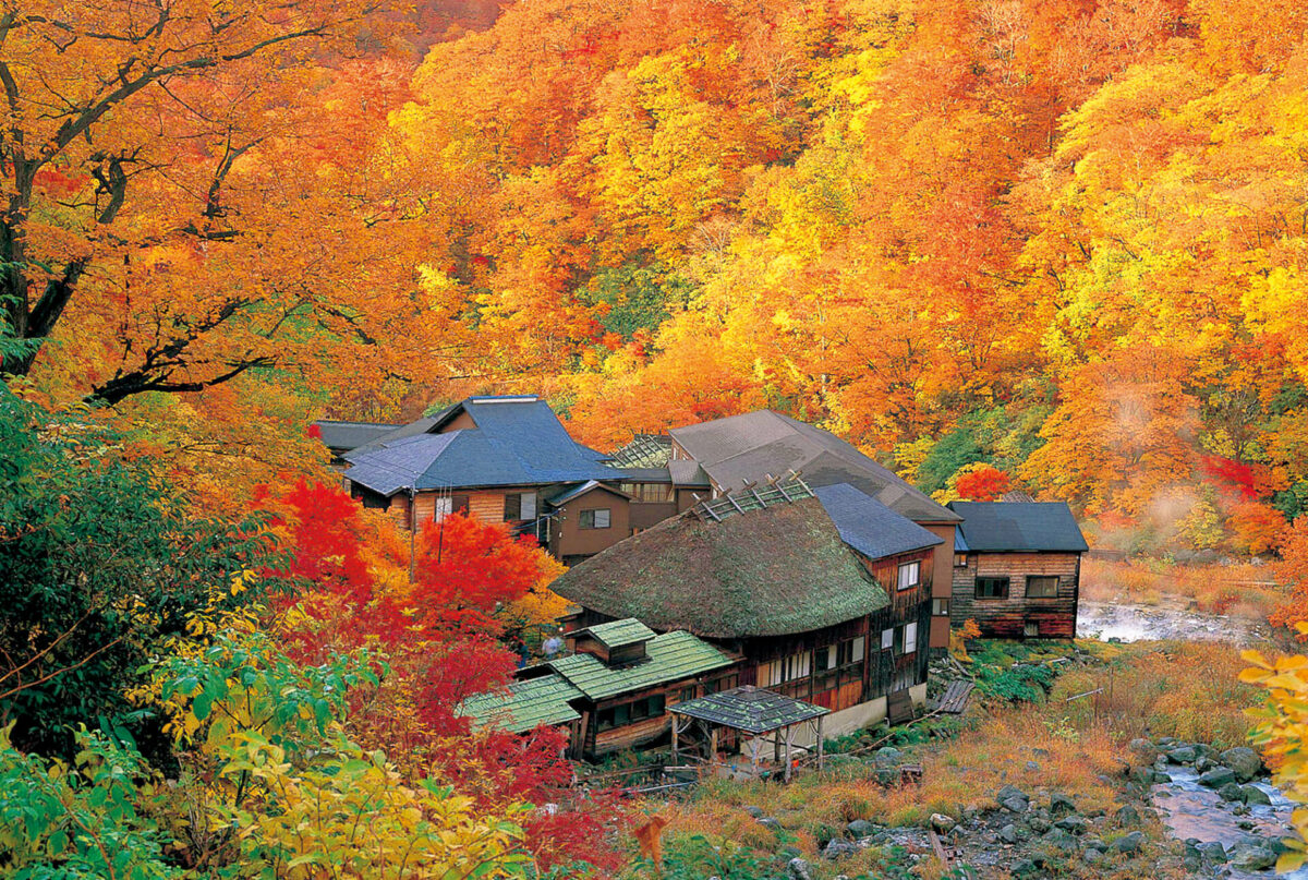 Nyuto Onsenkyo está coloreado por las hojas de otoño desde mediados de octubre hasta mediados de noviembre.
