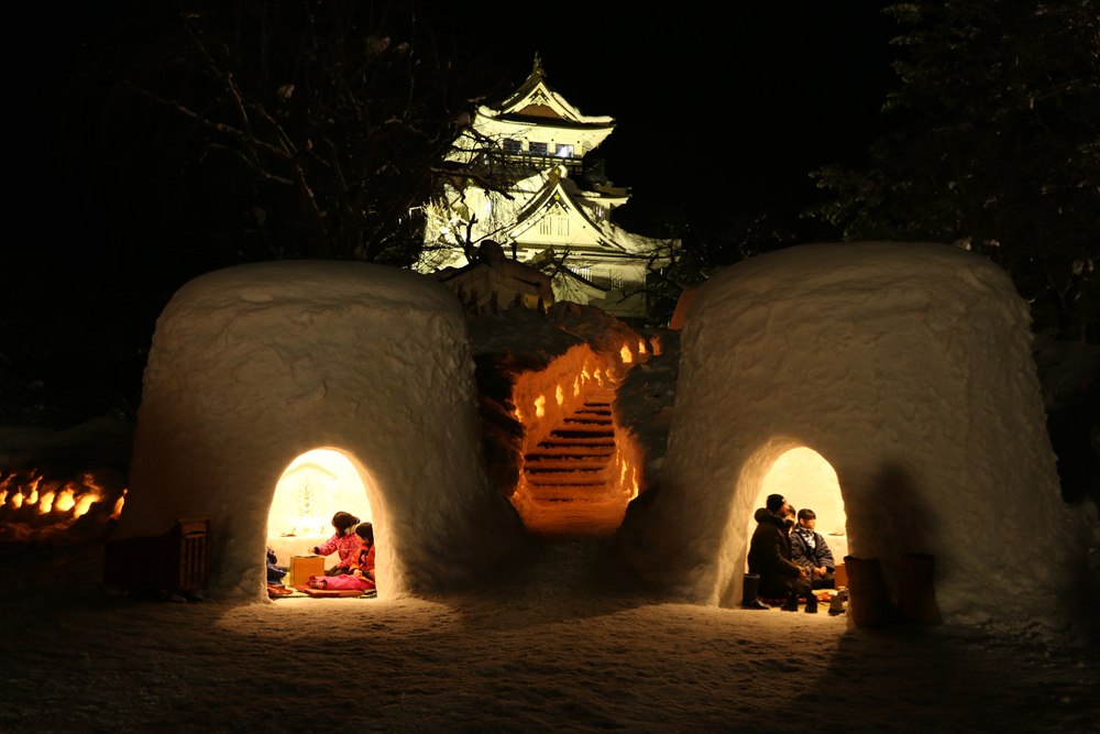아키타현의 겨울의 풍물시는 [카마쿠라 ] 입니다. [카마쿠라]라고 하면, 요코테시에서 옛부터 행해지고 있는, 눈을 산처럼 쌓아 올려, 거기에 큰 구멍을 파고 안에서 떡이나 잡조 등을 먹는 “ 요코테의 가마쿠라 ”(요코테시 지정 무형 민속 문화재)가 떠오릅니다.
