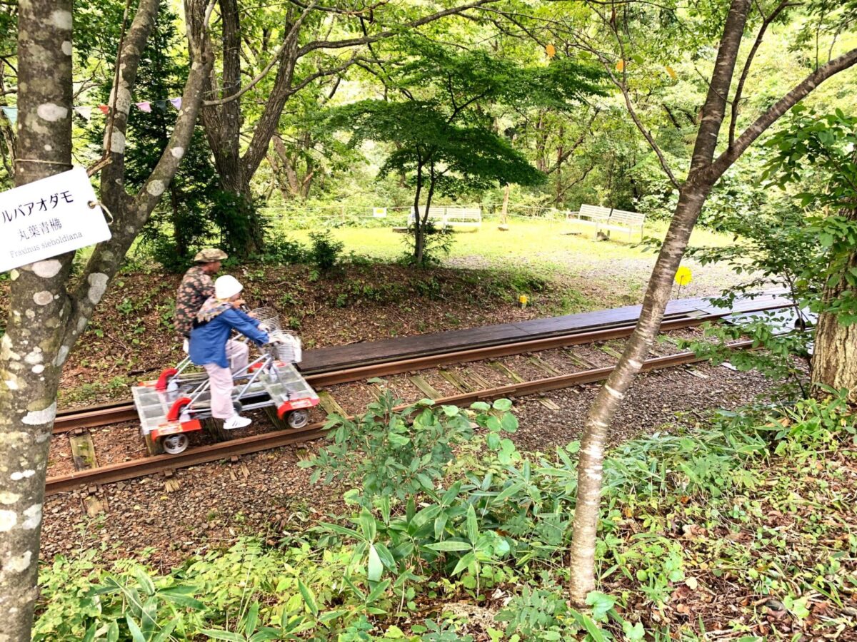 레일 바이크는, 동력차가 당기는 1호차로부터, 전동 어시스트 부착의 14호차까지 차량수와 바리에이션이 풍부해, 승차 인원수나 체력에 맞추어 선택할 수 있습니다.