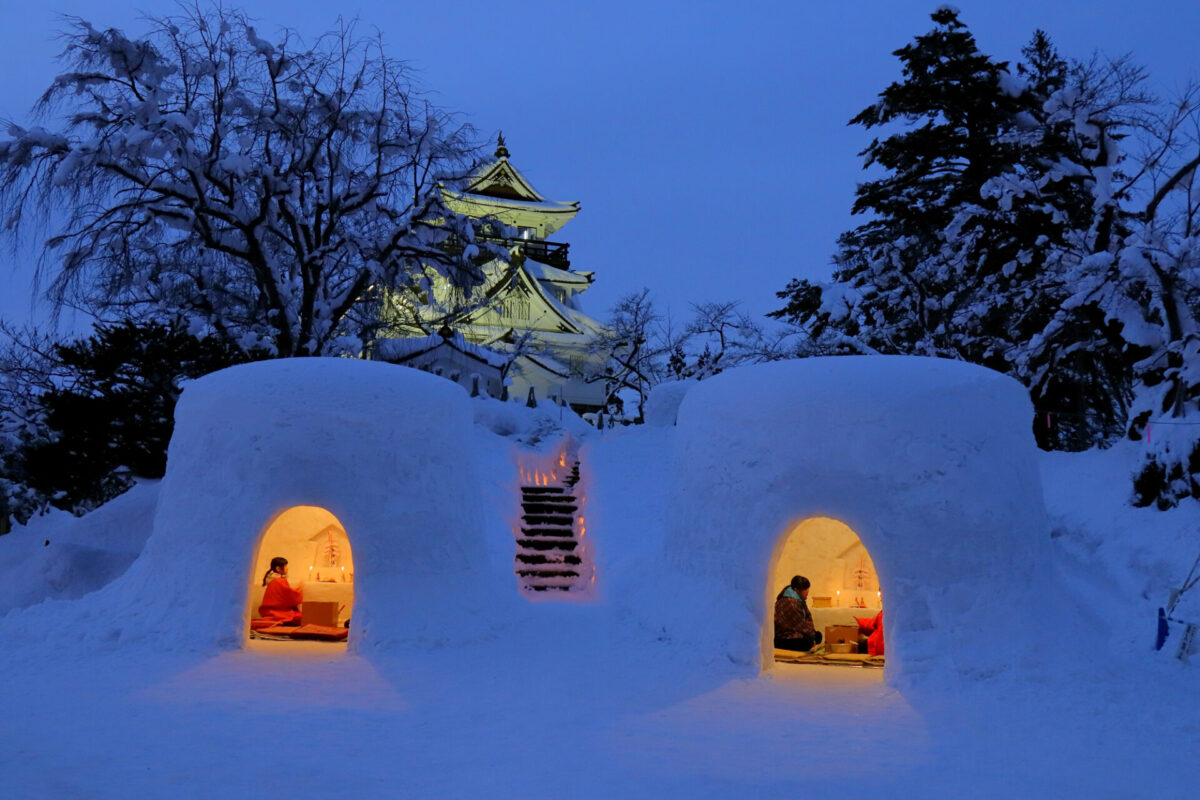 雪屋的形状多种多样,从在积雪上凿出的洞到带有某种屋顶的方形墙壁,不一而足。但像横手镰仓这样如今常见的圆形雪穹顶式雪屋,最早出现于1959年(昭和34年)。直到20世纪70年代,雪屋才开始像今天这样在公园和其他场所举办。令人惊讶的是,这竟是因为汽车日益普及,雪穹顶的建造必须避免影响交通。在汽车优先的时代,雪屋的建造逐渐衰落,取而代之的是建造“迷你雪屋”。但如果这意味着活动能够安全举办,那么将活动集中在几个开放空间或许是一个正确的决定。
