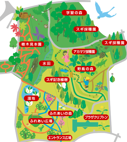 秋田森林创造活动支援中心以秋田县森林学习交流中心Plaza Crypton(秋田市川边岛)为基地,在秋田县各地提供森林徒步学习体验、森林材料手工艺体验、森林志愿者活动等。交流中心周围环绕着“互动之森”、“野生鸟类森林”和“树木样本园”,以及稻田、湿地和互动广场,游客可以通过各种体验了解森林、树木和自然环境。