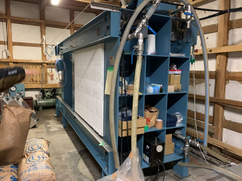 大约20天后,酒醪(发酵醪)发酵完成,用压榨机分离成清酒和酒糟。新鲜压榨的清酒随后经过过滤、巴氏杀菌(高温灭菌)和储存。